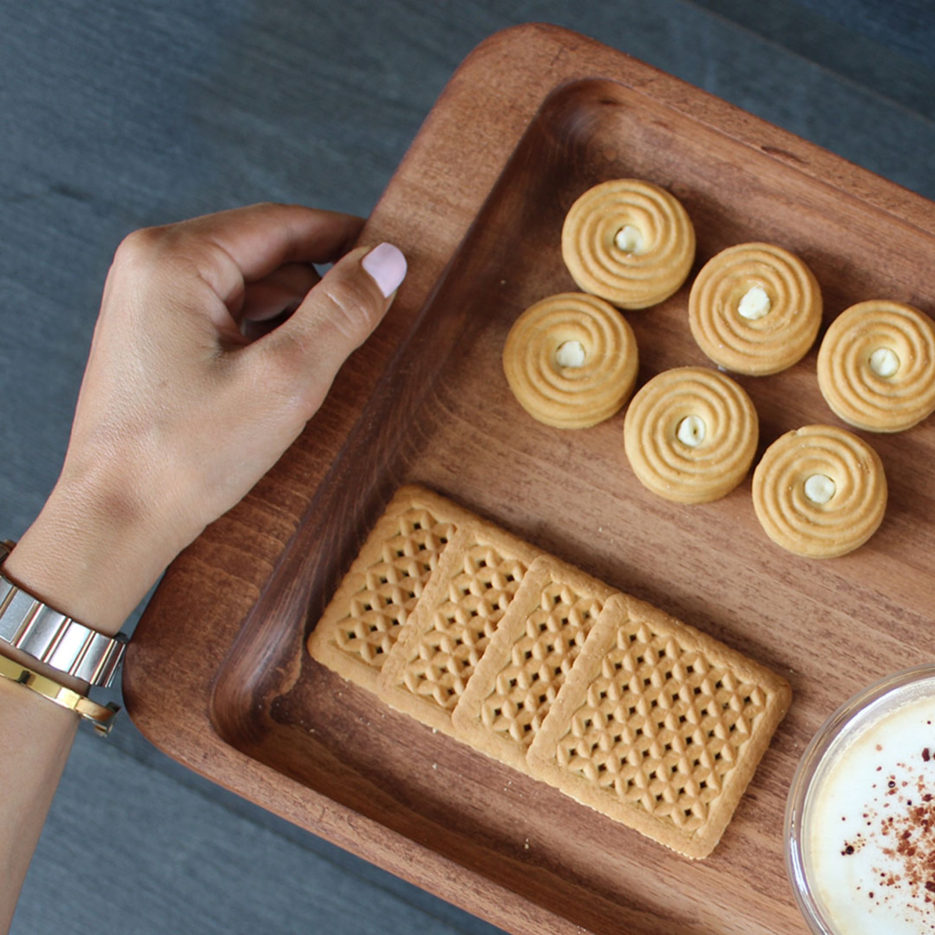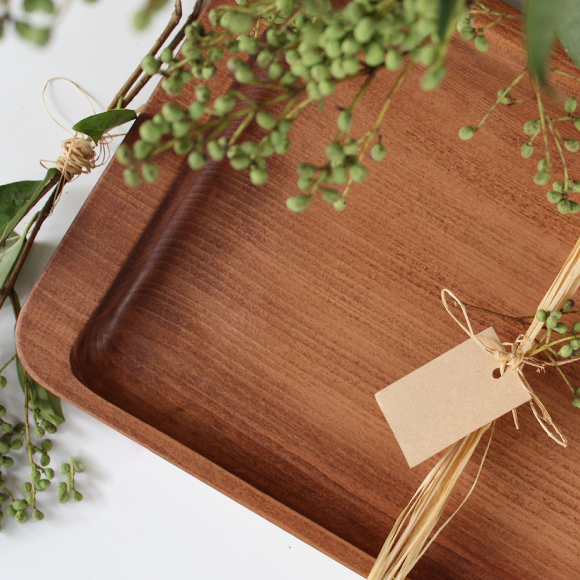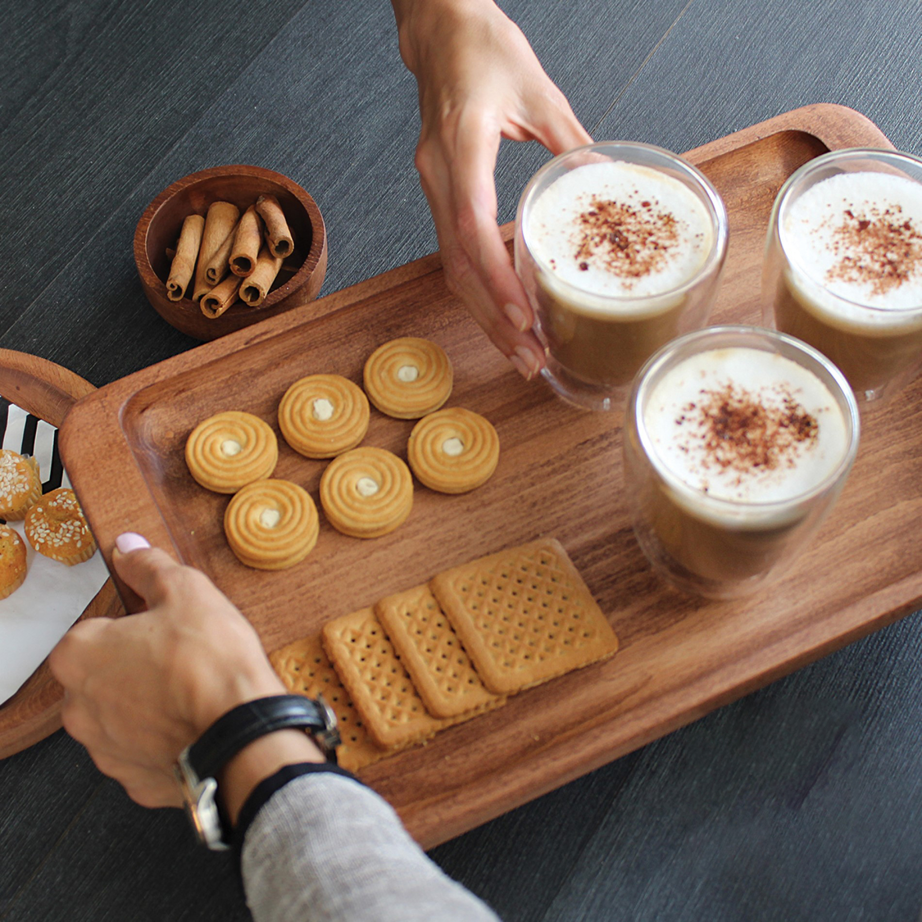 Dieses rechteckige Serviertablett mit Griffen ist ideal für den sicheren Transport mehrerer Gläser und Tassen. Die erhöhten Ränder verhindern ein Verrutschen der Gegenstände und bieten zusätzlichen Schutz. Gefertigt aus robustem Buchenholz, bietet das Tablett thermische Beständigkeit und eine langlebige Qualität, die auch nach häufigem Gebrauch intakt bleibt. Es ist eine stilvolle Ergänzung für jede Küche oder jede festliche Tafel und bringt ein Gefühl von Natur und Eleganz in Ihr Zuhause. Das Tablett kann auch als dekoratives Element verwendet werden, ideal für Empfänge und Partys.