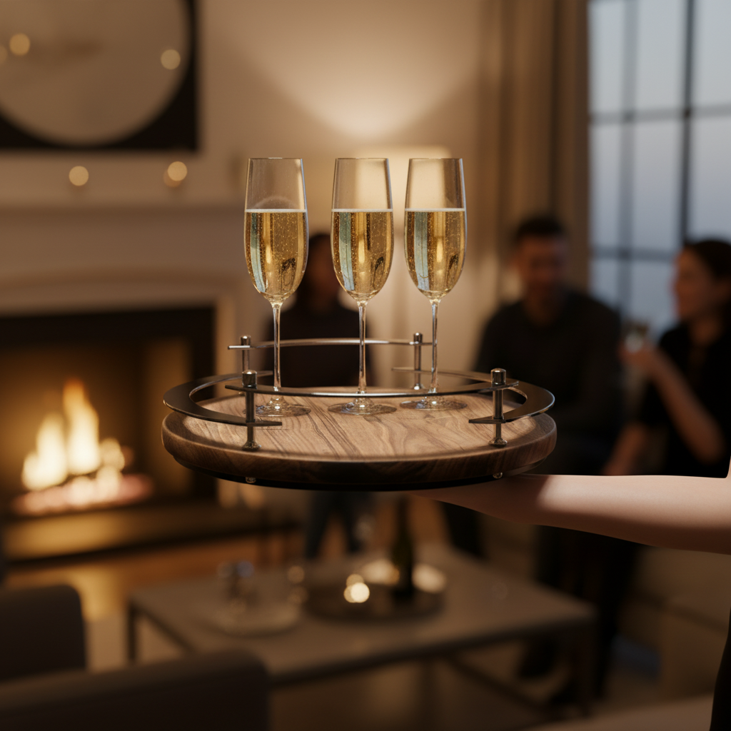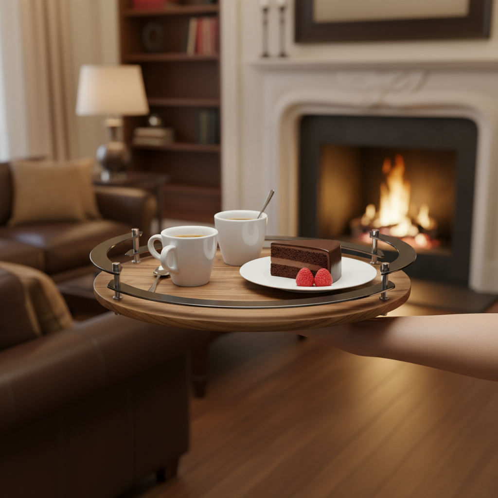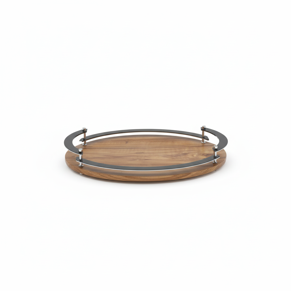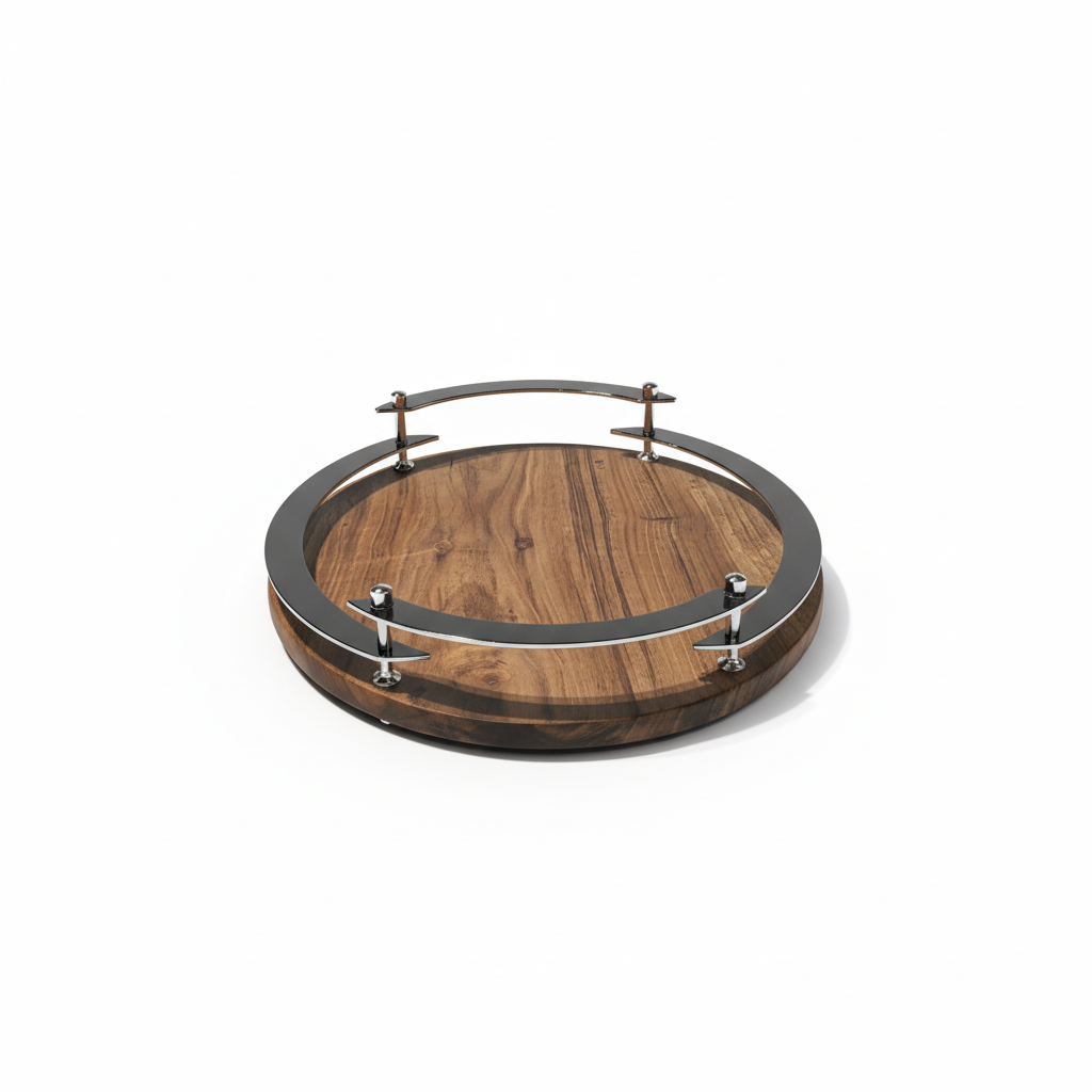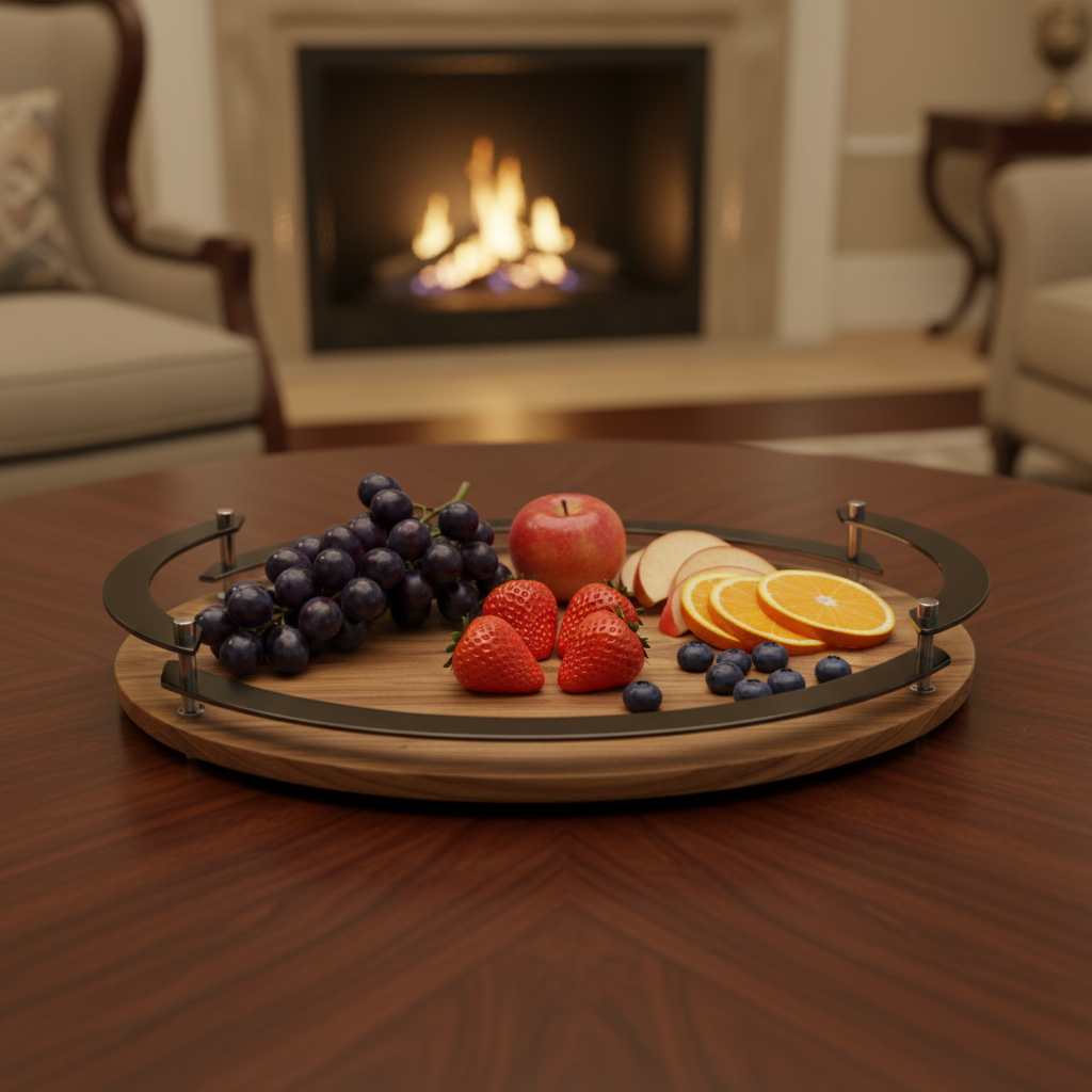 Edles Servierbrett/Tablett aus massivem Walnussholz mit umlaufenden Stahlgriffen. Die natürliche Maserung trifft auf kühlen Metallakzent – robust, stilvoll und ideal zum Servieren von Kaffee, Kuchen, Canapés oder als dekorative Basis für Kerzen & Vasen. Die erhöhte Griffkante sorgt für sicheren Halt und schützt vor Abrutschen.