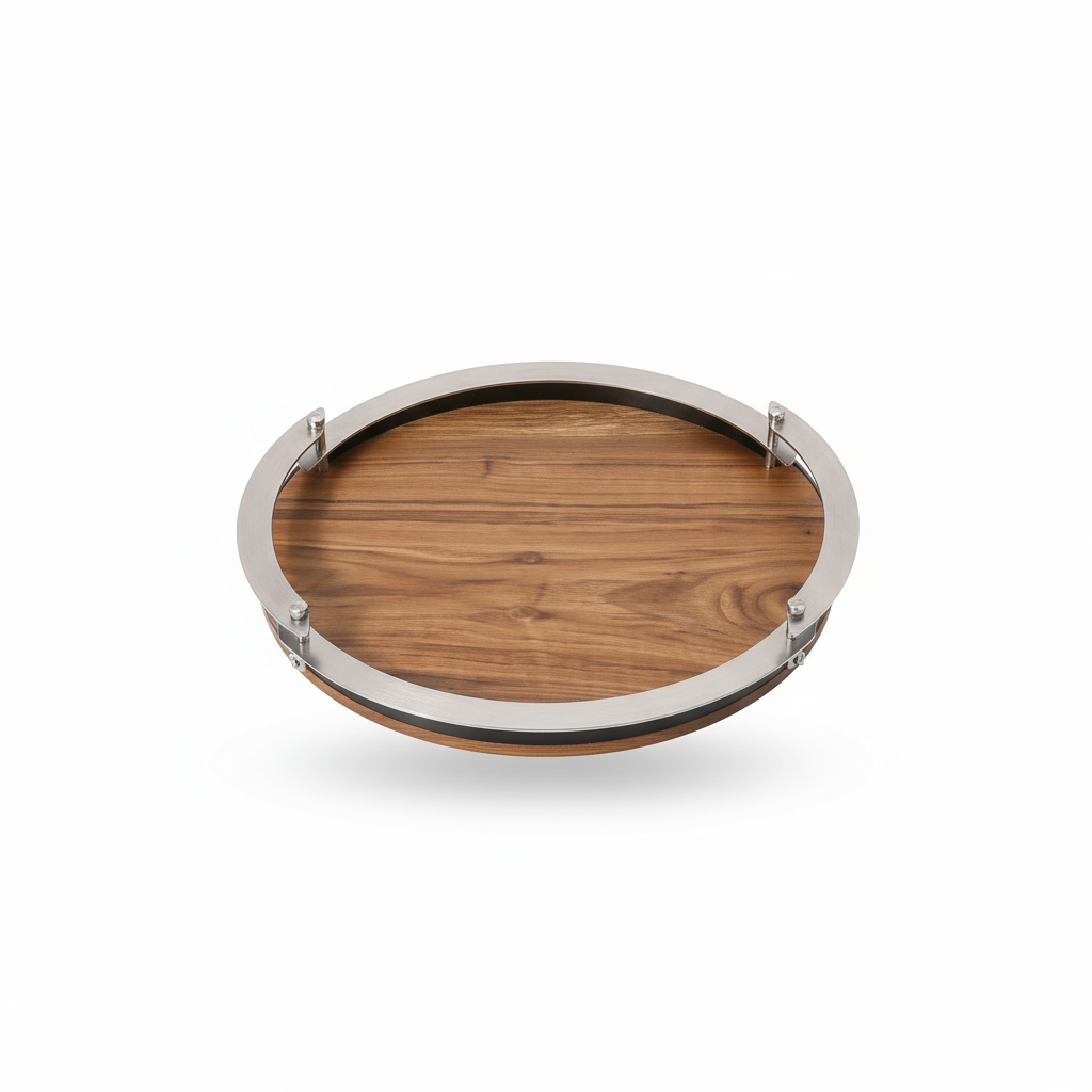 14 ArbeitstageServiertablett aus Walnuss mit Stahlgriffen – 30 × 40 cm