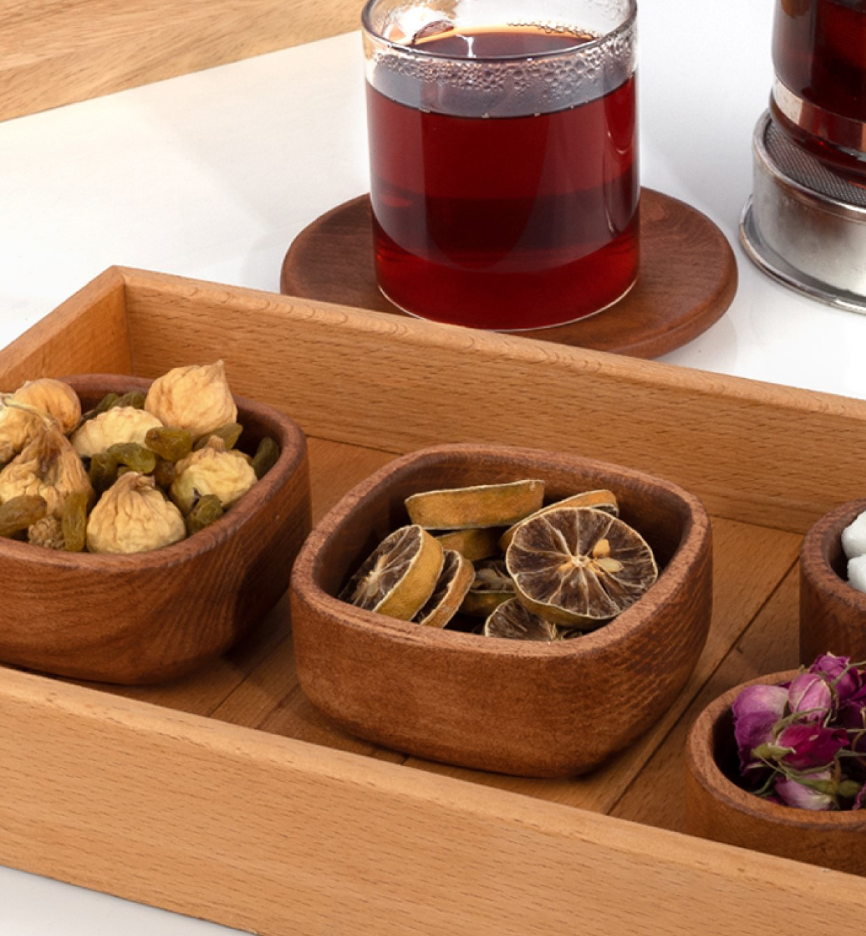 This square serving bowl, crafted from natural wood, brings warmth and a rustic charm to your dining table. Its stylish and modern design complements any table décor and is perfect for serving snacks, dips, nuts, olives, or condiments. Not only does wood offer an appealing aesthetic, but it also ensures maximum safety and environmental friendliness, as it is sourced naturally and produced without chemicals.