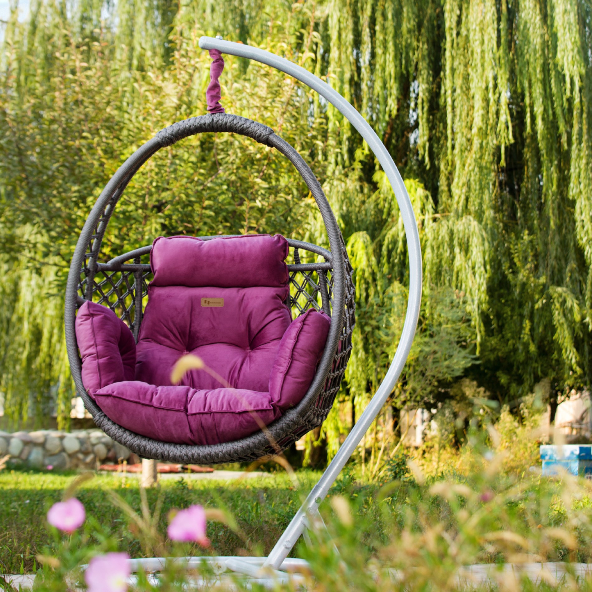 - Struktur: Pulverbeschichteter Stahlrahmen, 32 mm Rahmen mit 1,25 mm Dicke, strapazierfähige, handgefertigte Seile.