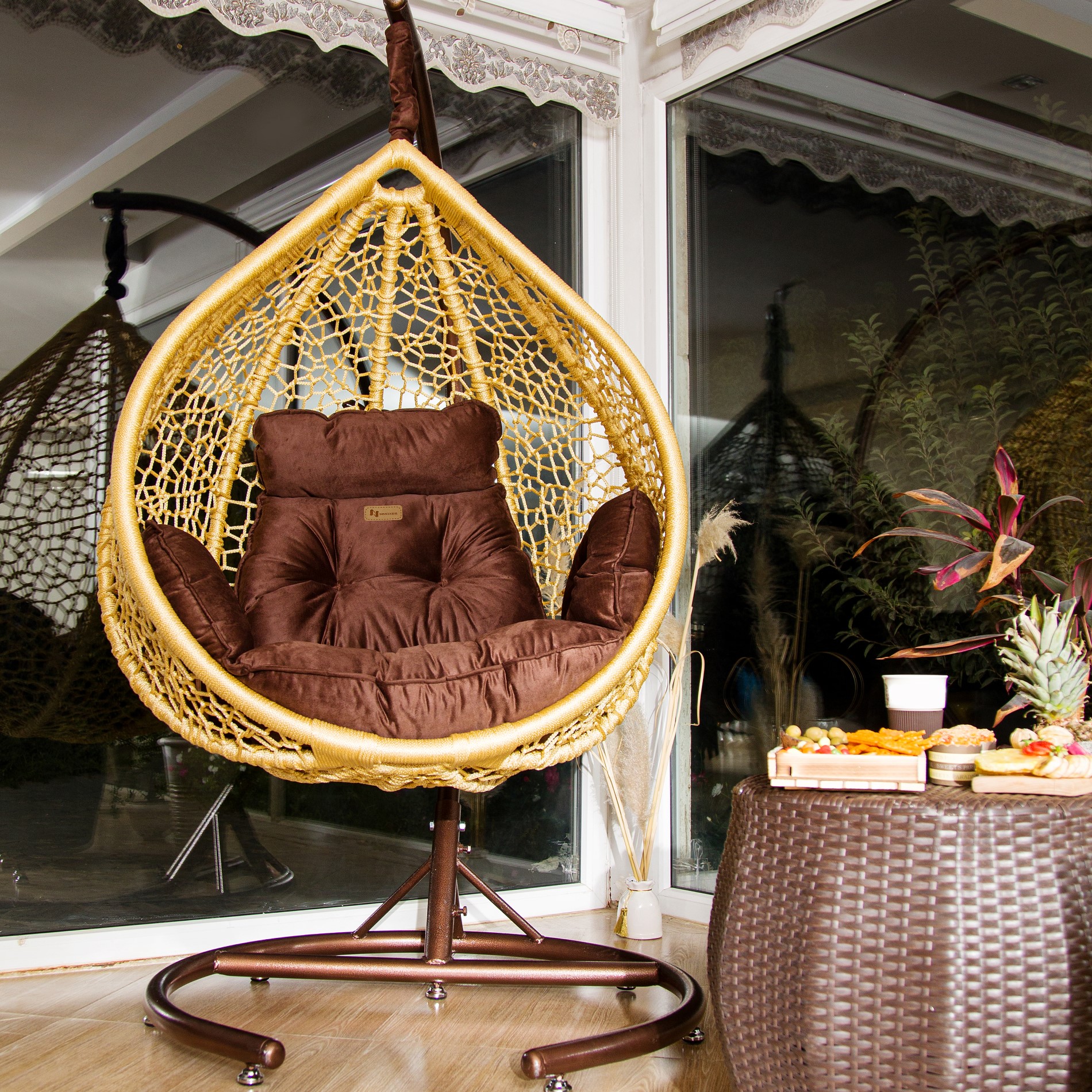 Der NIMAXES DIAMOND Hängesessel kombiniert Stil und Komfort und bietet mit seinem einzigartigen Design einen privaten, sicheren Raum zur Entspannung. Ob zum Lesen, Meditieren oder Musikhören – dieser Schaukelstuhl lädt zum Wohlfühlen ein. Mit seinem weichen, dunkelbraunen Kissen und großzügigen Korbdesign vermittelt er ein schwereloses Gefühl.