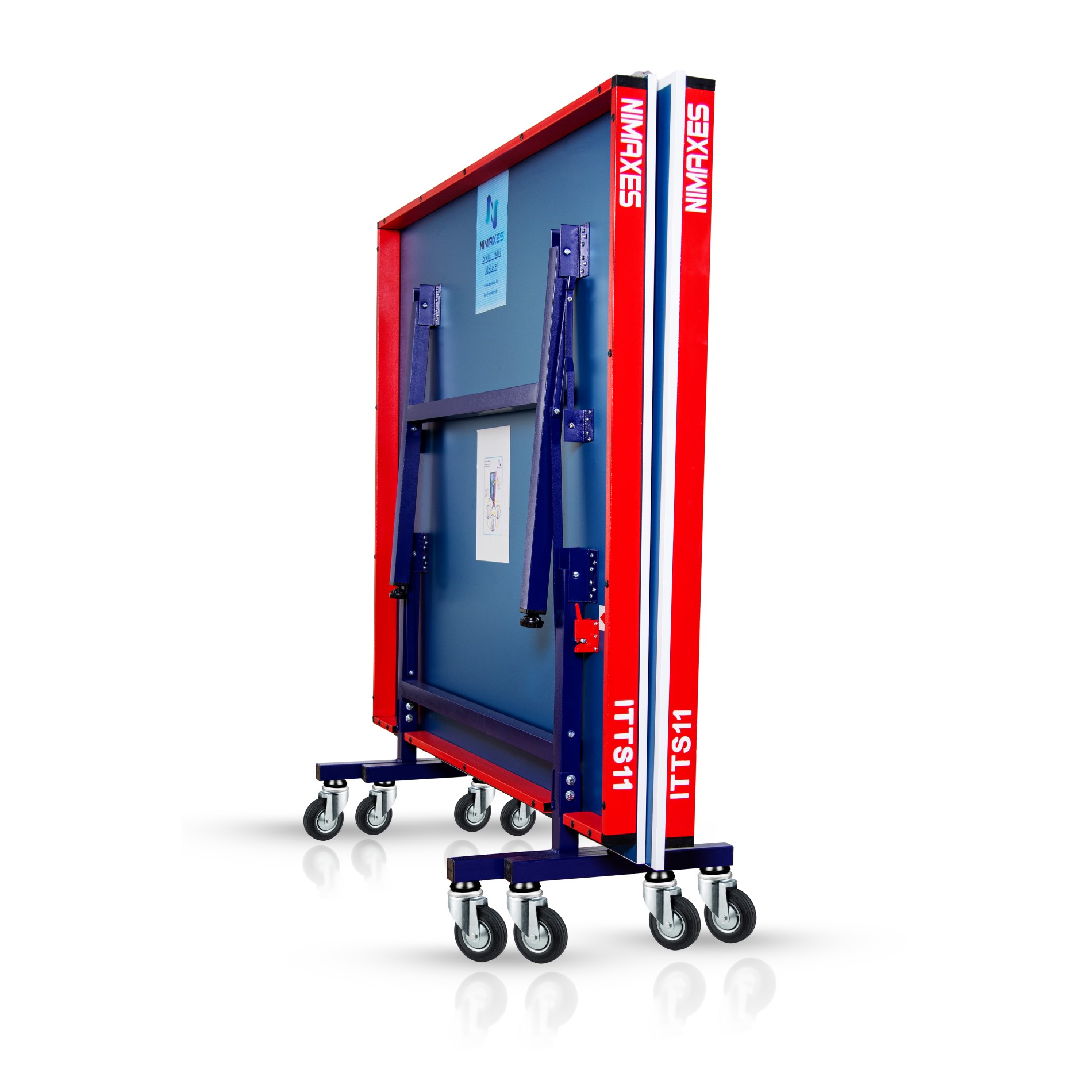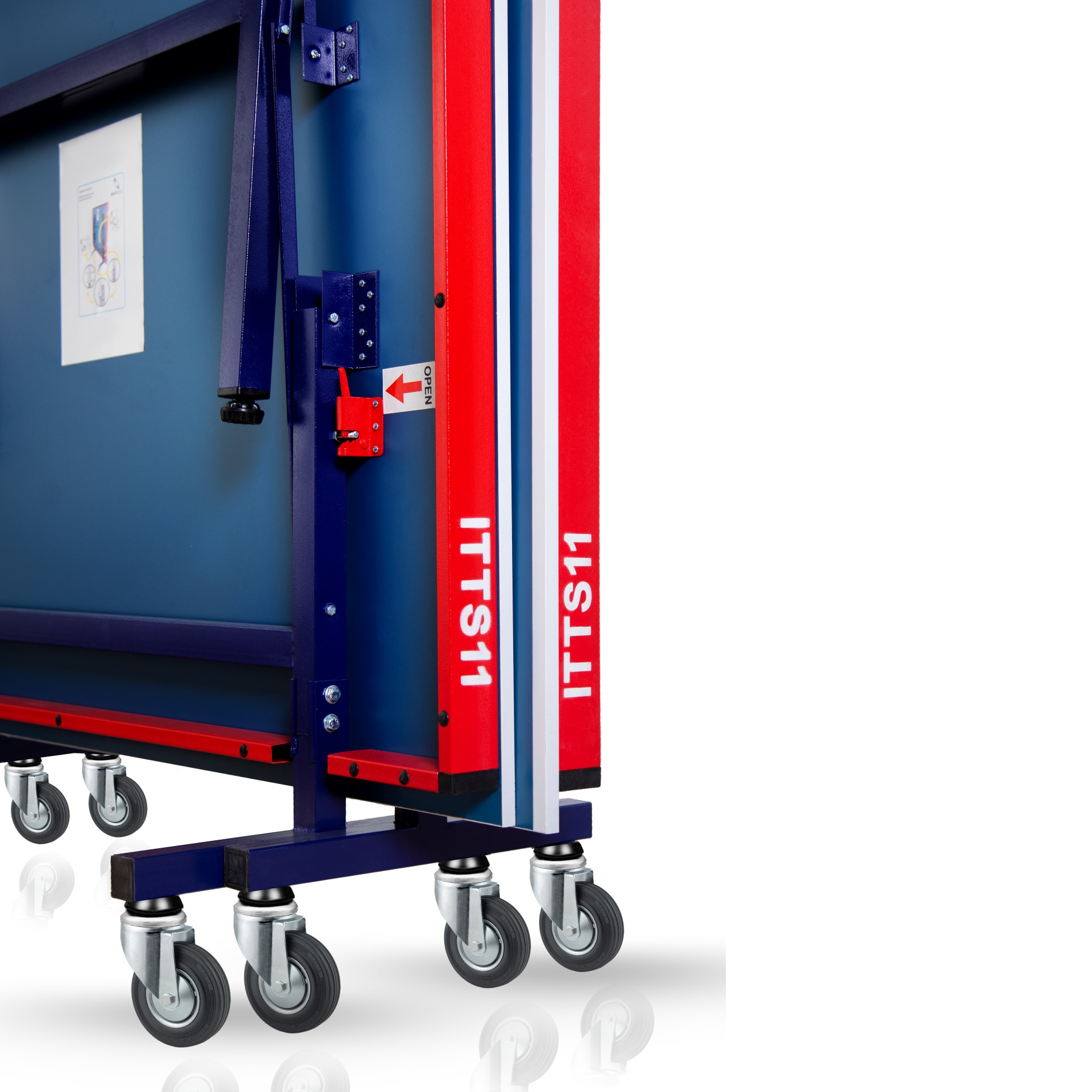 Mit ihren acht leichtgängigen Rädern kann die Tischtennisplatte problemlos an jeden gewünschten Ort bewegt werden. Für zusätzlichen Komfort lässt sich die Platte vollständig zusammenklappen, um bei Nichtgebrauch Platz zu sparen. Alternativ kann eine Seite hochgeklappt werden, um im "Robot"-Modus alleine zu spielen, wobei die aufgeklappte Seite als Rückwand dient.