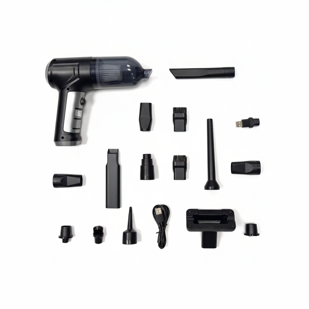 - Reinigung: Ideal für Auto, Zuhause und Büro – entfernt Staub aus engen Ecken, Polstern und Tastaturen.